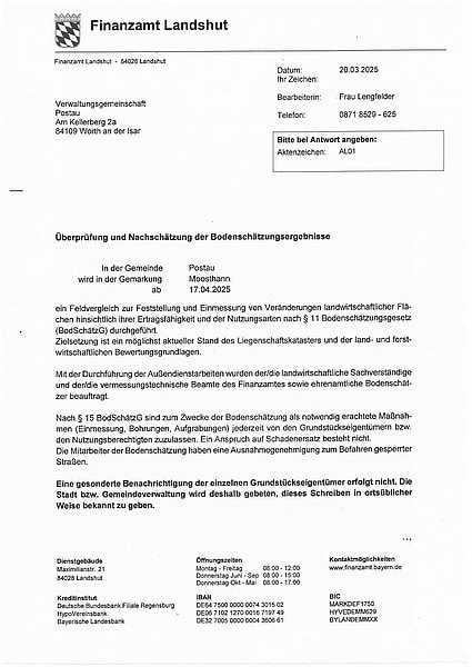 Finanzamt Landshut informiert – Überprüfung und Nachschätzung der Bodenschätzungsergebnisse