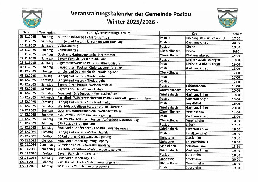 Sie sind hier: Startseite » Veranstaltungskalender der Gemeinde Postau – Winter 2025/2026 –