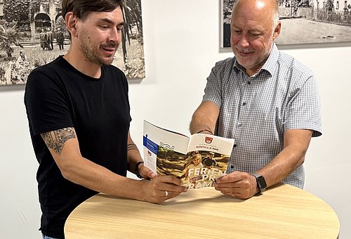Mario Zollitsch (li.) bei der Übergabe des Programmhefts an Bürgermeister Scheibenzuber
