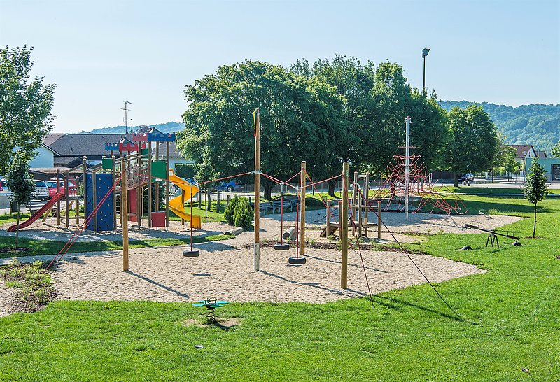 In unmittelbarer Nähe des „alten“ Sportheims des SV Wörth wurde ein Teil der vorhandenen Grünanlage zu einem Spielplatz der besonderen Art umgebaut. Die Initiative für dieses Projekt ging vom Verein „Spielplatzfreunde Wörth“ aus, die die Planung, die Finanzierungsmöglichkeiten abklopften und den Bau in Eigenleistung übernahmen. In über 1000 Stunden Eigenleistung haben dann die engagierte Eltern an der Gestaltung gearbeitet. Die Kosten des Kinderspielplatzes betrugen 30.000 €. Einen Teil davon hat die Gemeinde übernommen. Mit Geld und Sachspenden wurden die „Spielplatzfreunde” von ortansässigen Betrieben und auch von Privatpersonen unterstützt. Doch nicht nur am Großspielplatz in der Sportplatzstraße ist eine Menge Spaß für die Kinder geboten. Die Gemeinde Wörth bietet an vielen anderen Ecken ebenfalls einen schönen Spielplatz: